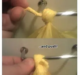 묶인 비닐봉투 쉽게 푸는 방법 비닐봉투 손잡이 부분이 너무 꽉 묶여 있는 경우에... 밑에 사진과 같이 손잡이 끝부분을 잡고 계속 돌리다가 밀면... 왠만하면 쉽게 풀린다... 단, 비닐에 무언가가 담겨 있다면... 손잡이 부분에 무게가 느껴지지 않게 바닥에 내린 후에 푼다... 더보기 진공청소기와 스타킹을 활용한 귀중품 찾는 방법 집안에서 귀중품이나 나사 등의 작은 부품을 잃어 버렸을 때... 진공청소기에 고무줄로 스타깅을 감싸... 구석구석 흡입해라... 청소기안으로 빨려 들어가지 않고 찾기가 수월하다... 더보기 식초를 이용한 샤워기 헤드 세척법 샤워기헤드가 물때 등으로 오염됐을 때... 비닐백에 식초를 담고 봉해두고 하루만 지나면 깨끗해진다... 특히 샤워기헤드부분이 오픈이 안되는 제품세척에 유용할듯 싶다... 더보기 이전 1 ··· 56 57 58 59 60 61 62 ··· 78 다음